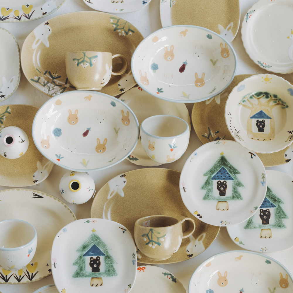 柔らかく可愛らしい動物や植物たちが、絵本の世界の住人のように器の中に住んでいるかのような大田さんが作られる器たちが今年もやってまいりました!