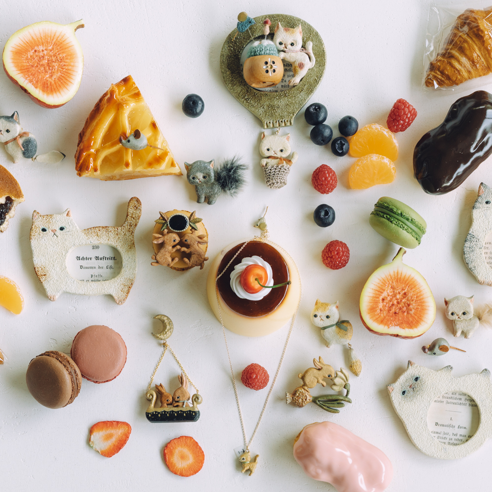 今回も可愛らしいブローチや、初めて拝見するネックレス。これがまた可愛い!針山も小さくてよく使うスタメンの針たちを刺しておくのにちょうど良いサイズ感。写真を入れられるフレームもaricaさんが作ると、色合いが重なって、こんなにキュートになるんだなとワクワクしています。美味しいものや色鮮やかな空間から、シャビーやレトロな空間、シンプルな空間色々な空間の中にaricaさんの作品がある風景を想像してみたのですが・・