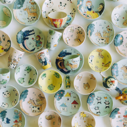 2025年02月20日さて、どうやらたくさんのお客様が今週のイロドリ陶器市を楽しみにしていただいているようでとっても嬉しいです。写真の東峯未央さんはなんと約3年ぶりに届きました。使い勝手の良いゴブレットや小さいどんぶりにも使えそうなカフェオレボウルが東峯さんが絵付けされるイッチンやハンコでとっても可愛く完成しています。どことなく懐かしい気がするそんな雰囲気の器たちがとっても素敵ですよ!ぜひご覧になってくださいね!