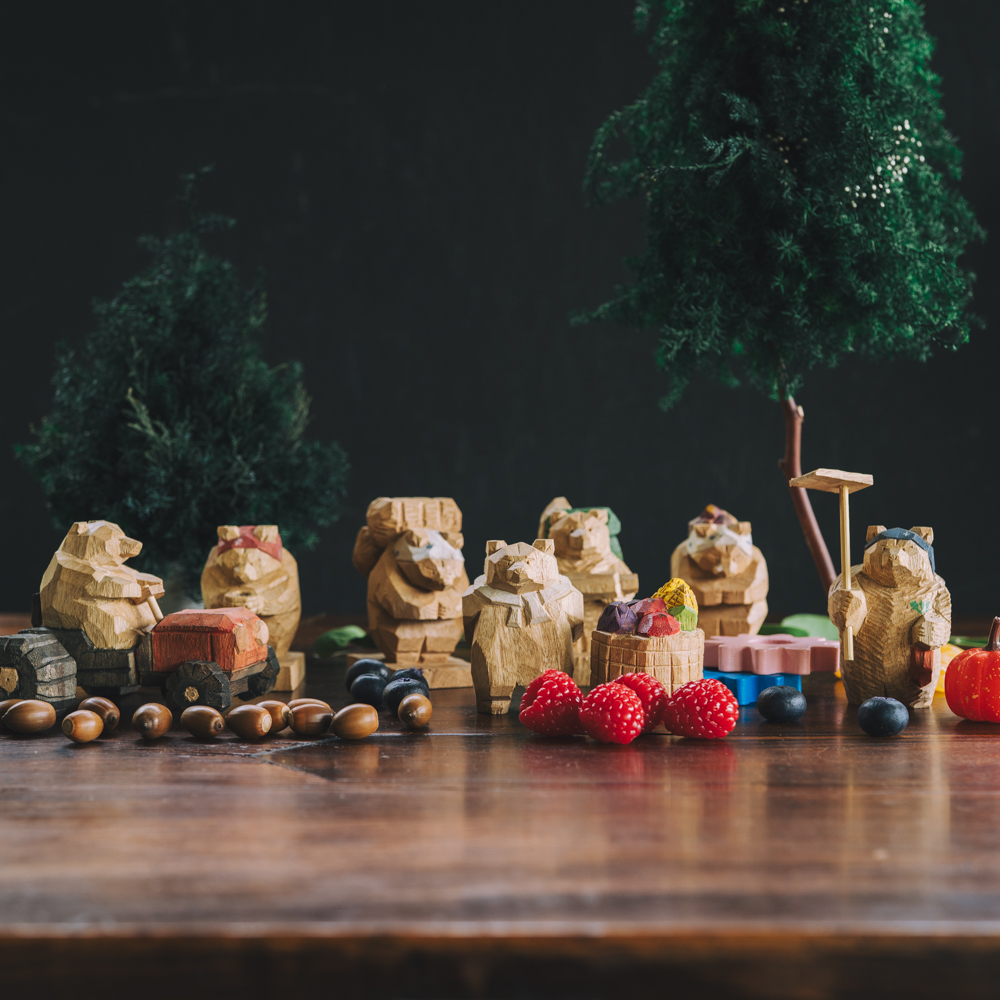 手のひらサイズの小さな世界の中で懸命に働く人・・・いや、くまさんたちが表現されています。