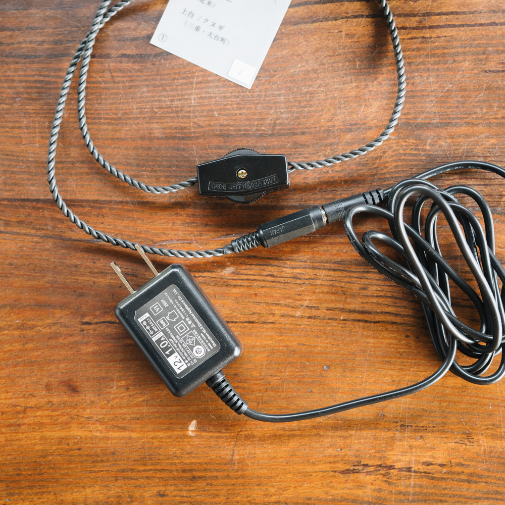 ランプにはそれぞれ電球と、写真のコンセントが付属しています。お買い求めいただいた方には「ランプの取り扱いについて」という説明書を同封いたします。ご使用前にご一読と、大切に保管をお願いいたします。