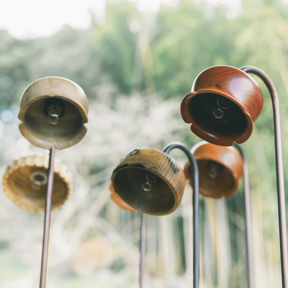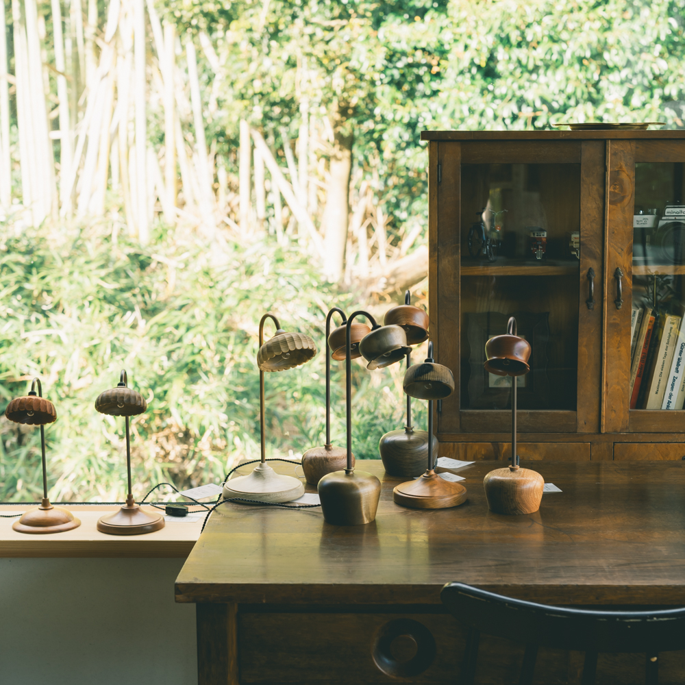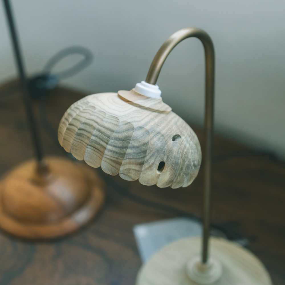 全ての作品が会話の中のふとした瞬間や、木材たちを気持ちよくこれからお付き合いできるようにと寄り添って作っていたら生まれた作品たち。細かな部分におしゃれに彫りを入れれていたり、彫刻刀で綺麗になりすぎずに表情がもっと豊になるようにと一仕事加えられていたり。灯りをつけていてもつけていなくても表情が豊かで温かみを感じる幸せなランプたちを、デスクや寝室、お気に入りの場所に連れて行って楽しんでいただけたら嬉しいです。