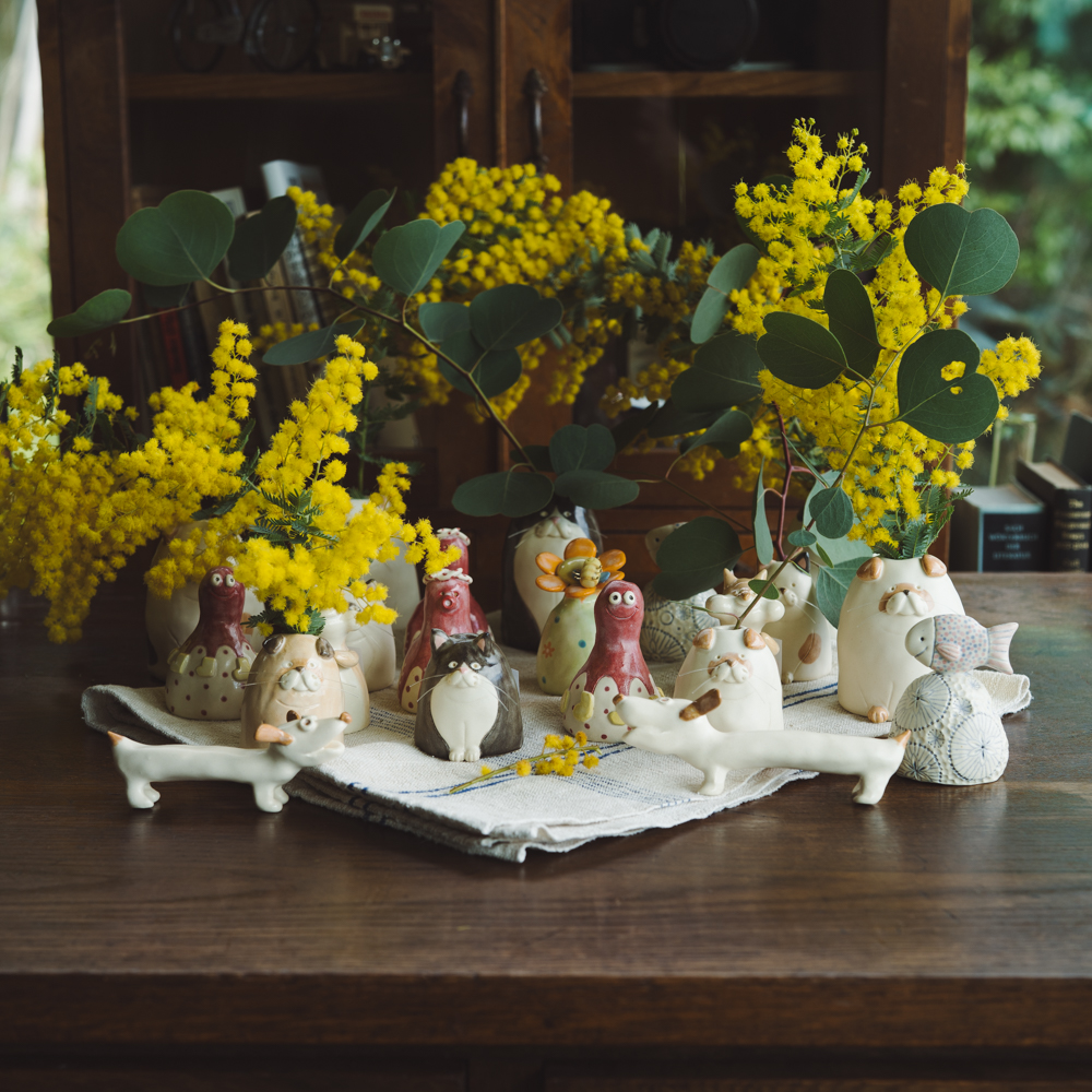 どんな場面で使おうとか、何のために使おうとかそんな深いことは考えずとも、そこにそっと居てほしい、タガワさんの作品たち。楽しい日は一緒に喜んで、悲しい日は、ゆるりとした表情で「まぁそんな日もあるよね」と言ってくれそうな仲間達を迎えてみてはいかがでしょうか?ぜひおすすめです。