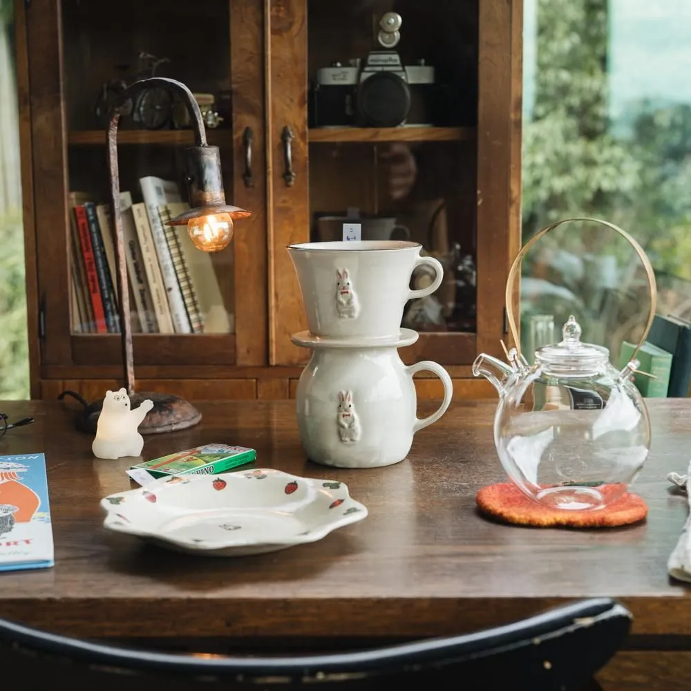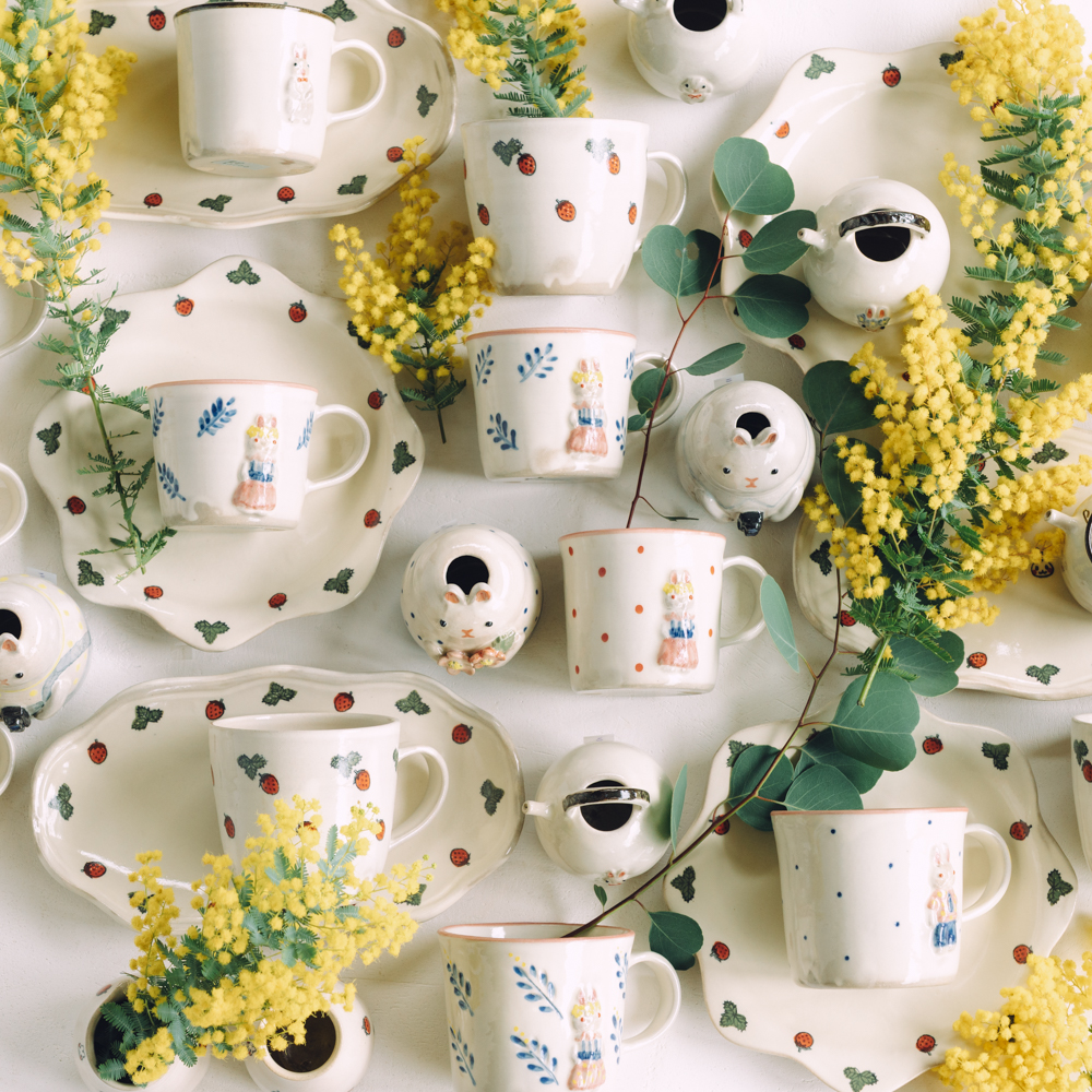 つるんとしているのでお手入れもつるん。イチゴはご自身でハンコを作られてポンっとして作られているとのことで、手仕事ならではの表情が出ています。どこか懐かしさも感じる小松さんの器たち。使いやすいサイズ感のお皿やマグ、ちょっと一息というときにぴったりなドリッパーやアロマポットなど、暮らしのさまざまなシーンにあると嬉しいなというアイテムたちです。ぜひご覧くださいね。