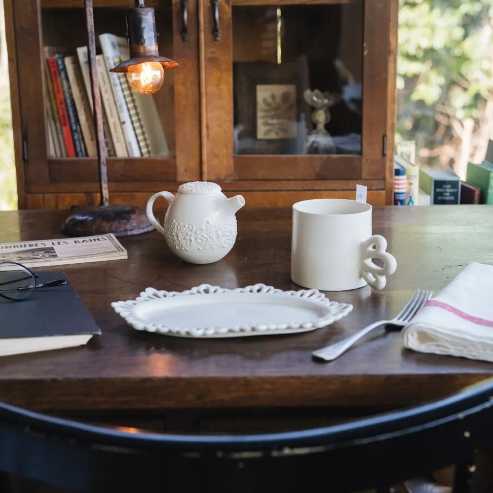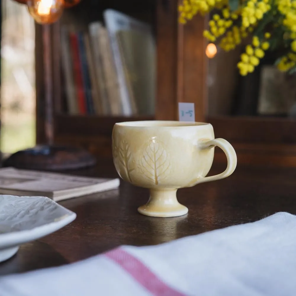 今回足付きのマグカップもボタニカルで作っていただいたり、ティアラが取っ手になったマグカップもあったり。色合いもとっても明るくて上品な作品たちが大集合しました。色味も白、レモン色(黄色)、ワサビ色(黄緑色)、空色(青色)、ラズベリーピンク、雪色(グレー)をネーミングもとても可愛らしいんです。一番上の写真を撮影するときにお皿の上にマグカップを置いたり色々したのですが、どの色合い同士も相性がよく、色違いで購入するのも個人的におすすめです。ぜひ、ご覧くださいね!