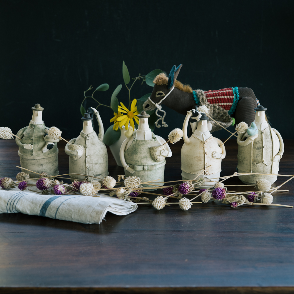 一輪挿しは人がお花を持っているうように見えるよっこらしょスタイル。可愛い。色々な花を持ってもらいたい!お花だけではなくてペン立てにしてデスクの近くに置いても◎