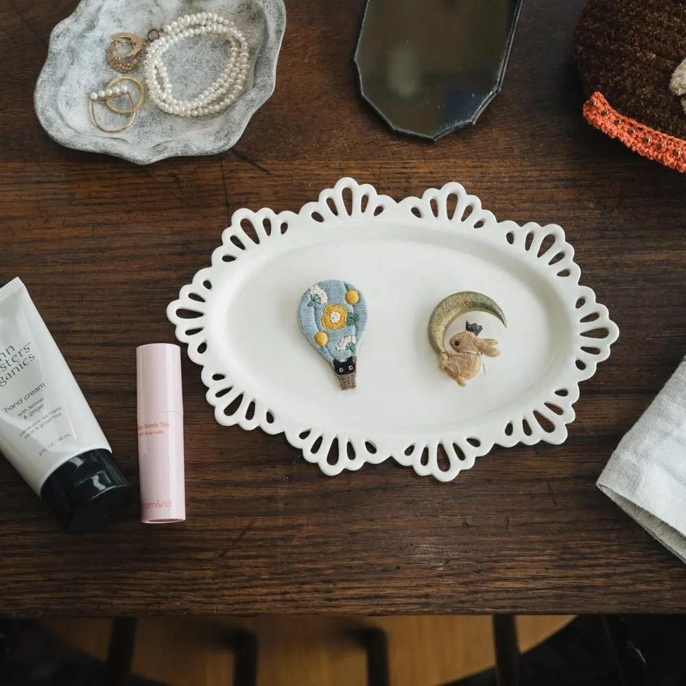 これからどんどん薄着になっていって、ニットなどの厚手のものから薄いブラウスなどのポカポカとしたお出かけにぴったりの季節に。お気に入りの洋服や小物は、ブローチの重さで傷つけてしまいたくないなぁなんて思う方にぴったりの軽い作りになっています。この軽さの中で可愛らしい世界観を作られているなんて純粋にすごいなぁ〜と。個人的にはバッグにいくつかつけるのも可愛いのでは?と目論んでいます。ぜひ、これからの季節のワンポイント、ツーポイント、スリーポイントに。相棒としてたくさん一緒にお出かけしてくださいね。