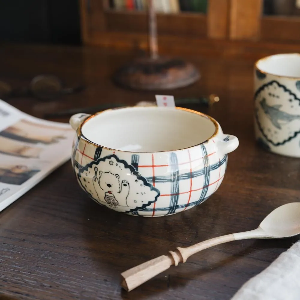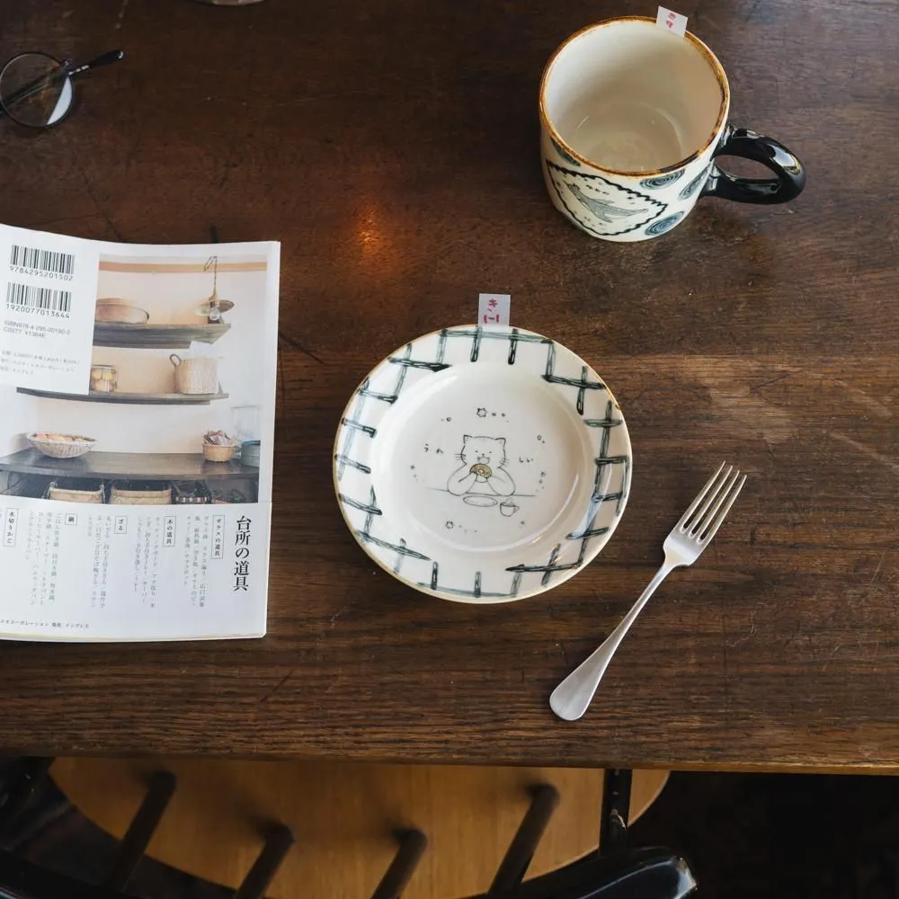 菊地さんの作品ってなんだか描いた絵が動いたり喋ったり泳いだりもぐもぐ食べたり、のんび〜り眠ったりしそうな癒しの眼差しを感じてしまいます。線や丸にも手仕感が感じられて、とっても可愛いのです。つるりとした表面なので美味しいお菓子やスープ、パスタなど色がたっぷりついた美味しい食事たちも遠慮なく盛り付けて、美味しく食べた後は美味しく癒してくれた動物たちがまたばっちり見えるようにつるんと綺麗に洗い上げることができますよ!